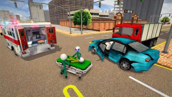 1、在火柴人救护车驾驶游戏里,玩家同样能够在线体验各类趣味关卡与任务。