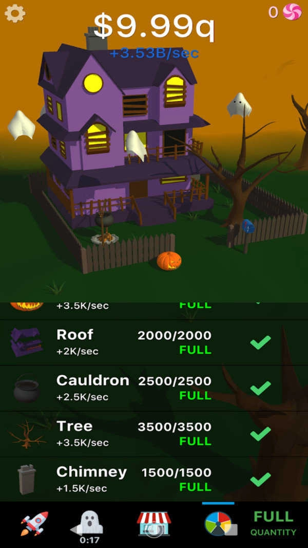 1、闲置鬼屋游戏以万圣节鬼屋为背景,题材非常的新颖,极具创意性。