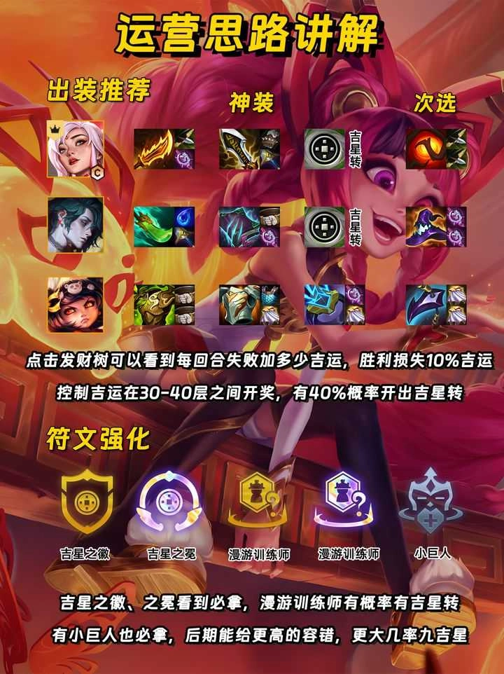 前期不升级,开出3吉星之后走连败,可用两个棋子卡住可酷伯,没有3吉星之前先走连胜保血量,点击发财树记住每回合的吉运是多少‼️