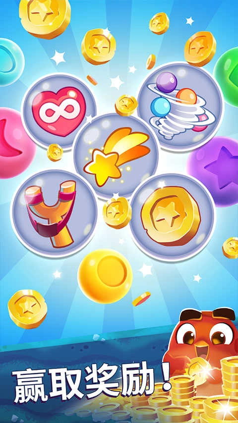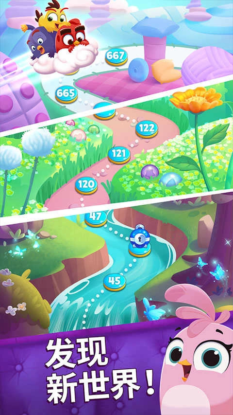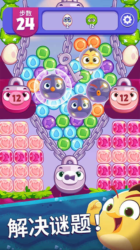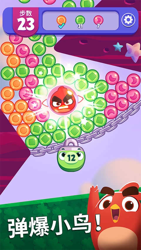 1、首先打开愤怒的小鸟梦幻爆破最新版,玩家可以点击相同的泡泡来消除它们;