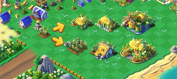 成熟的麦田可以收获麦子,继续合成可能变成小麦磨坊或者鸡蛋孵化场。小麦磨坊可以采集出优质小麦,合成优质小麦就可以解锁面包工坊系列来制作各种面包了。合成到大型面包店还能解锁新角色艾米莉亚。
