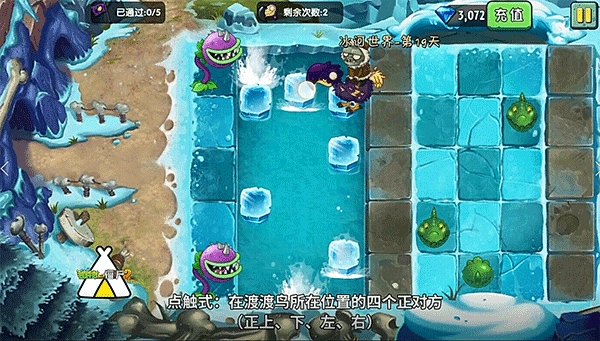 在渡渡鸟特殊关卡中,玩家需要控制渡渡鸟,躲避鳄梨,脚踩浮冰过河,同时避开大嘴花,到达对岸。