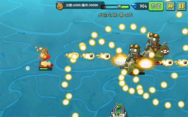 2000分到8000分之间的部分,植物升级为火焰豌豆射手。这部分也是难度最大的,因为这部分的最后,会同时出现两个小飞机。同时打两个小飞机是最耗时的。如果没有很好的躲避子弹的技巧,在这里会耗掉很多血。很多人都卡在这里无法通关。