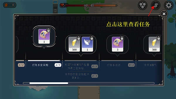5、点击下图位置可以显示任务,你可以按照任务提示来开始你的冒险之旅。
