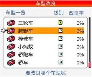 除开车辆强化与零件改装,车型的改良也会大幅度提高赛车的属性与行驶能力