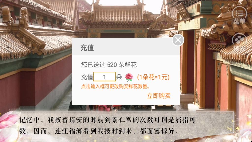 玩了这个游戏,感觉很好!圆了我玩华妃娘娘同人的梦,而且很喜欢老奕!希望下部早点完结!!撒花撒花????????