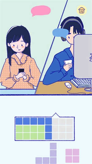 游戏开始就会出现女主在地铁里和妈妈打电话,这时会出现两个问答,玩家直接点击自己想要回答的话就行,然后就要帮女主找房子,只要觉得喜欢就选心,不喜欢就选X,当进度条满了就行。当到了客厅沙发的时候,玩家需要将拼图拼完整,拼完后联系房东会有一个小游戏环节,完成这个游戏环节这一章就完成了,总体来说,这一关比较简单。