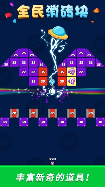 2、优先击打有技能的砖块,可以帮助你更快地消除喔!