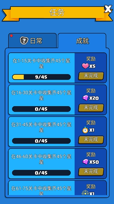 1、滑动瞄准目标,会自动释放小球,消所有砖块,才能获得分数和星星,如图所示