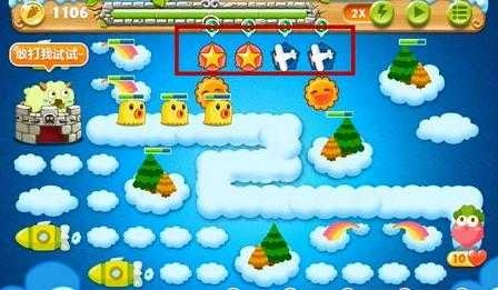 2、打掉太阳旁边的道具获得2个炸弹星和2只玩具飞机,此时前期就基本没什么压力。