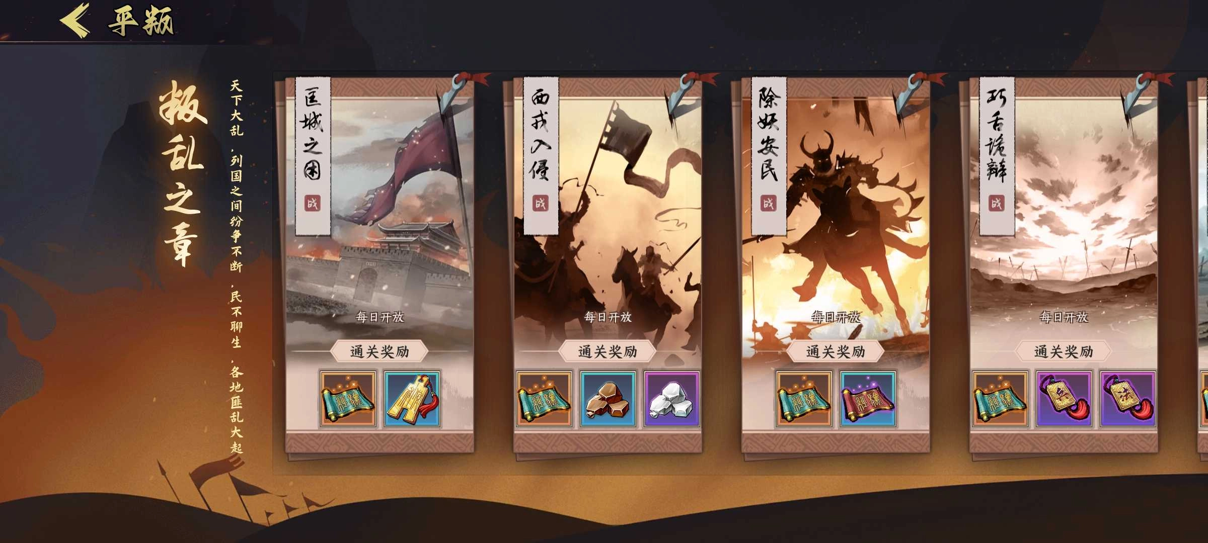 平叛副本属于日常资源收益类副本,其产出的资源主要分为四种类型: