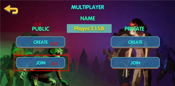 2、在公共房间和私人房间选择创建房间或者加入房间;