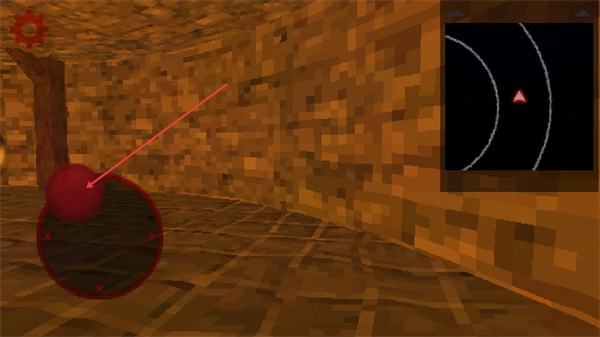 3、进入游戏场景后,通过操作界面的红色操控球控制角色移动,同时参照右侧小地图的指引推进场景探索进程。