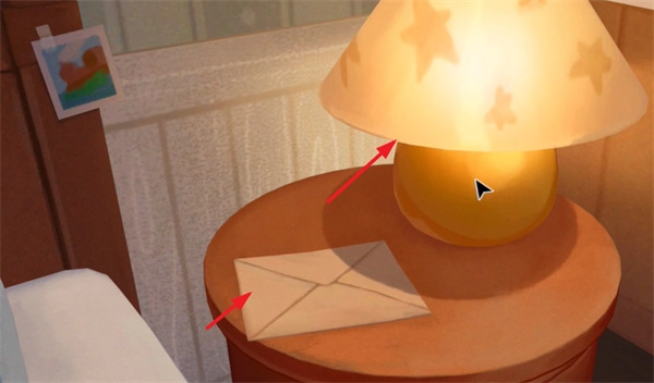 2、快速点击台灯,就能直接亮起来,还能打开旁边的一封信。
