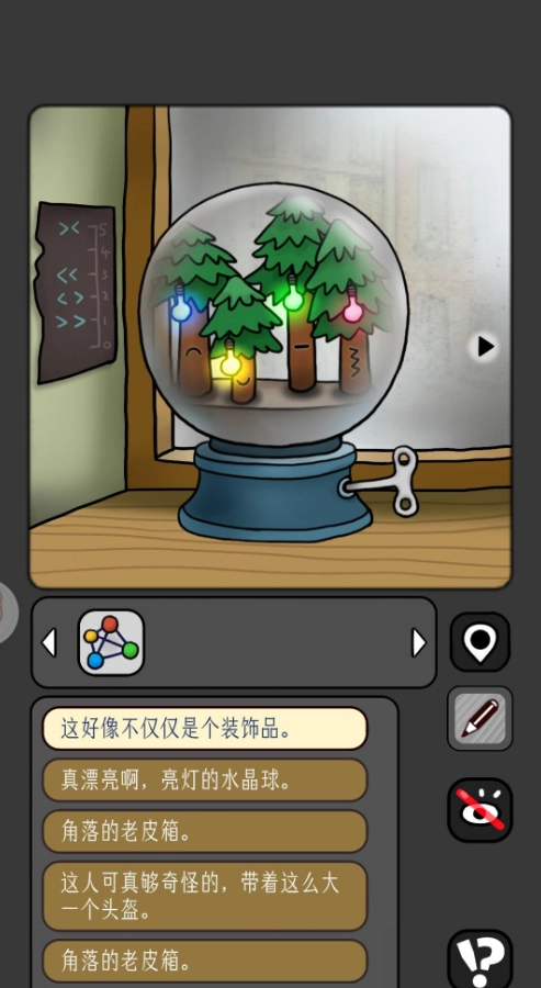 前往鸟房间里树林玻璃球的位置,将发条放入玻璃球右下角的孔洞中,接着按照颜色顺序点击:243132。