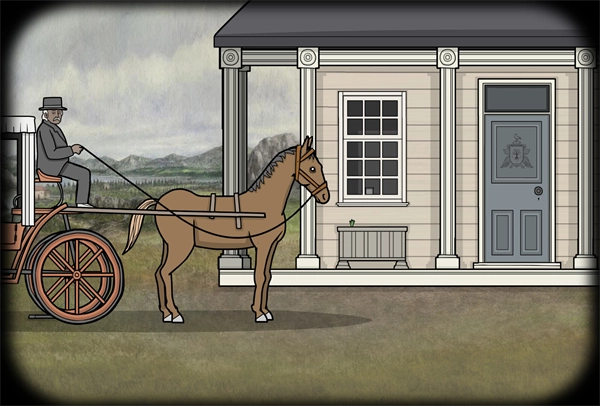 40. 向窗外望去,可见宾客乘马车抵达。点击马车完成游戏!