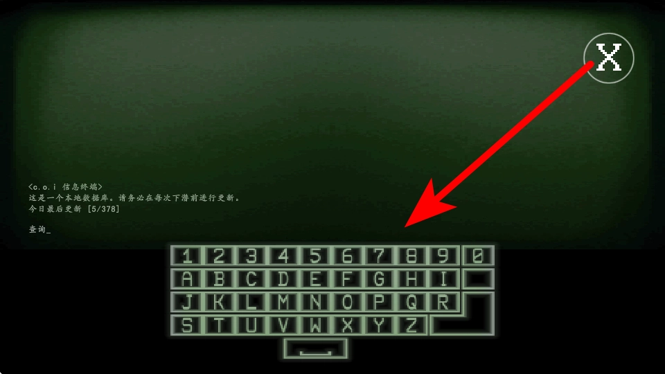 4、在信息终端界面,通过红色箭头指向的键盘进行输入操作,完成数据查询或指令发送,推进任务进度。
