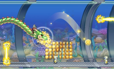 4、跳跃机甲:这个装备的叫法会有所不同。小编喜欢叫它跳跃机甲。因为,这个道具的跳跃性很好,而且滞空能力也比较强,因此,优点在于特别适合吃金币。不过,它的飞行高度也仅比摩托车高一点,所以骑乘时需要特别注意低位的电火链。