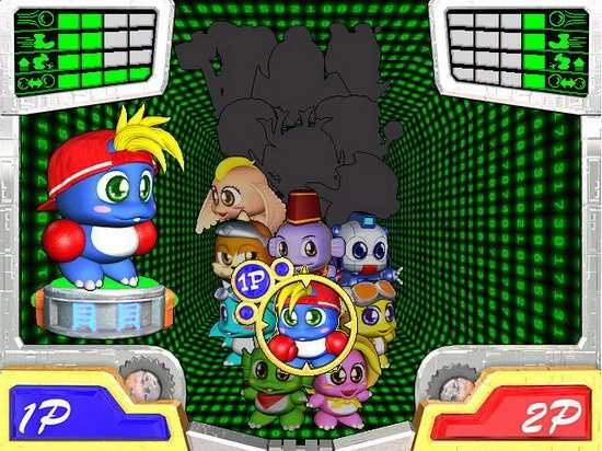 一般怪物石币仔、飞飞、啊棒、紫暴龙、蓝暴龙则会丢石钱、飞行、棒槌、冲撞等攻击,越到后面的关卡,难度越高,玩者可以依照敌人的特性,在当铺更换各种泡泡龙,选择适合的泡泡龙角色上场。