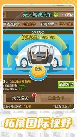 玩家通过拾取极品装备、培养员工、投资收购等策略手段实现资本极速扩张,建立商业帝国;