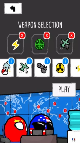 2、在正式挑战之前,玩家能够自由选择三种武器,包括无人机、机枪或核弹,选好后点击“PLAY”就能开始挑战;