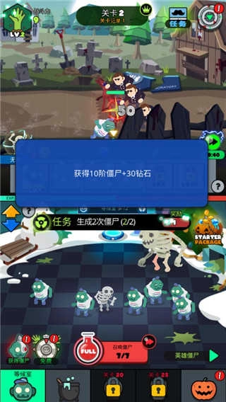 4、还得设计出各式各样的僵尸,借助游戏里的合成系统,你可以收集到30种具备不同特点的僵尸种类。
