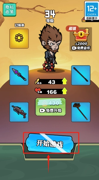 1、启动游戏后,点击“开始游戏”按钮,进入对应的游戏场景。