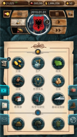 经济发展,玩家需要管理国家的经济,探索新技术,提升国家的声誉。通过合理的政策和投资,玩家可以将国家建设成经济强国。