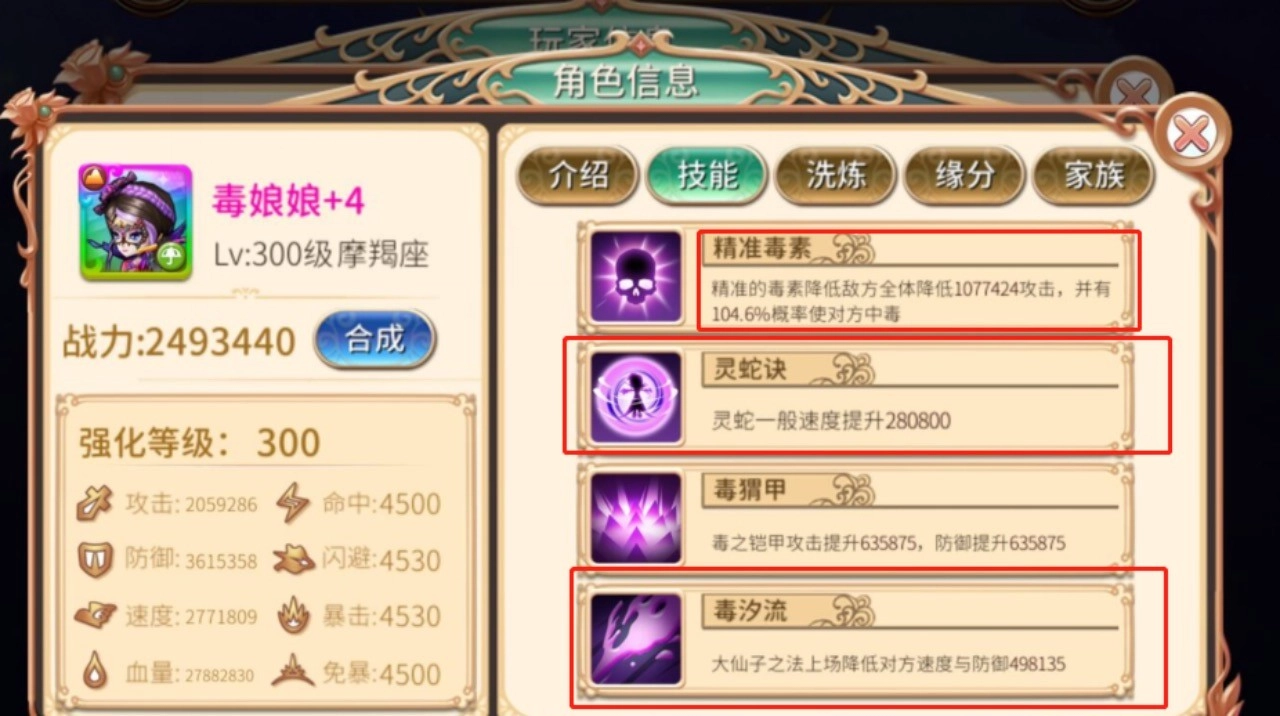 洗练方面:毒娘娘最开始洗练二速二血,三速一血,或者三血一速,这些适合用竞技场为主,后面本人试过在副本有的关卡方面这些都不行。后面尝试洗练四速,发现毒娘娘洗练四速更加厉害。保证优先出手,本人推荐优先洗练四速,当然每个服务器情况不一样,根据竞技场情况来定。