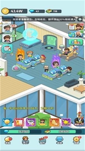 8、玩家可通过装修优化办公室环境,完善设施不仅能提高招募五星员工的几率,还能提升公司整体赚钱效率。