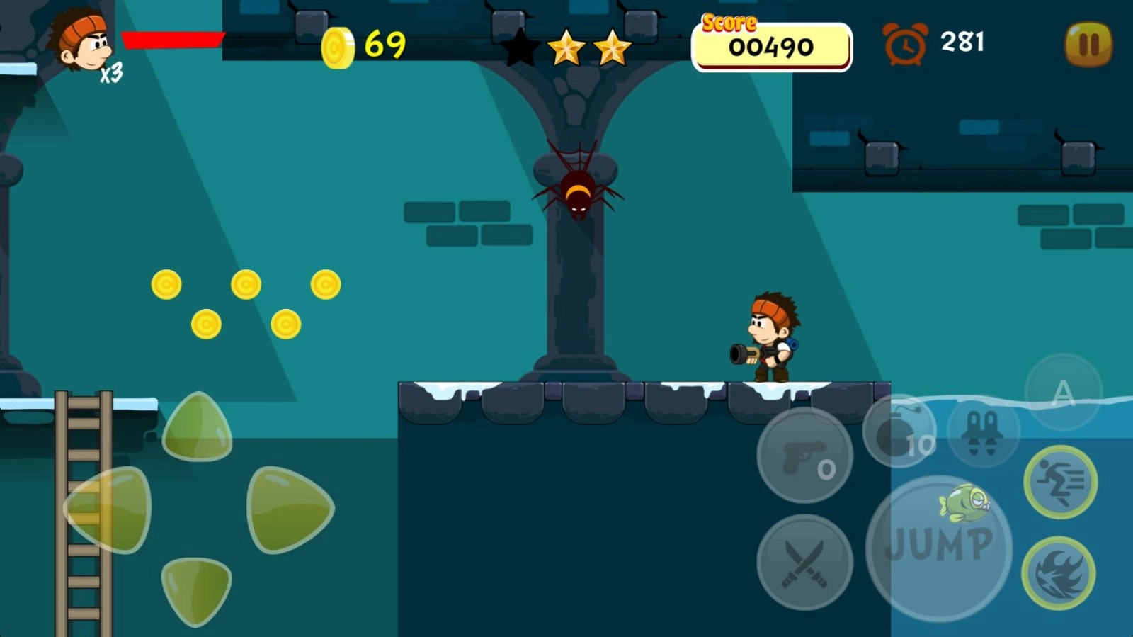 6、利用好角色技能躲避陷阱并且拾取金币。