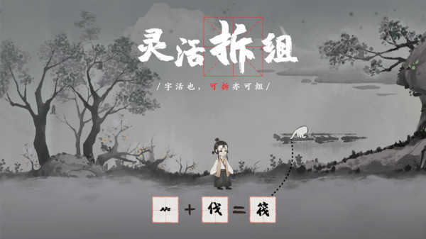 游戏场景中许多物体可以转化为对应含义的字,通过汉字结构的拆分与重组,变为新的字。