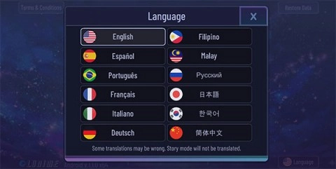 1、游戏启动后,点击右下角的“language”选项。