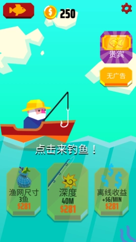 3、即使在你离开游戏时,老渔夫也帮助你继续赚钱,收获不再受时间限制。