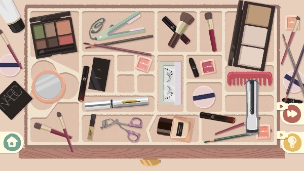1、首先将每一个化妆品放到相应的格子当中。