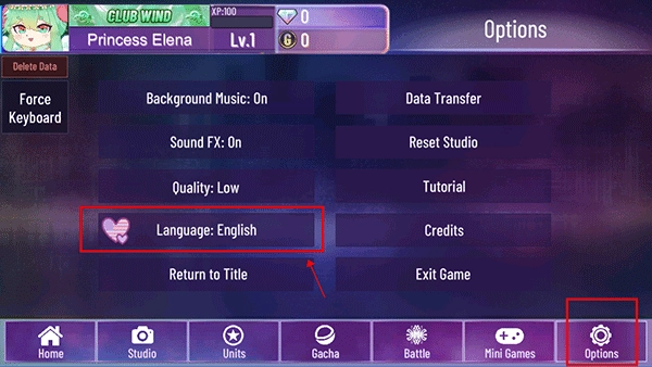 打开加查星云,点击主界面右下角爱心按钮,可以切换语言。