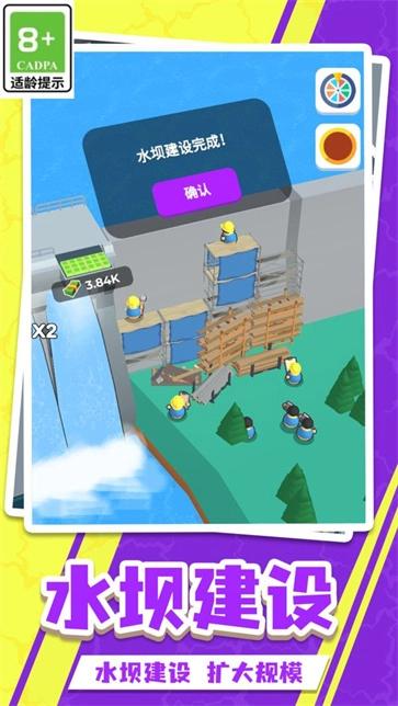 《小岛建设生活》是一款主打轻松体验的模拟经营游戏。在游戏里,你将踏上一段围绕大坝建设展开的精彩征程——从在湖面上搭建一座小小的水坝起步,一步步把它拓展升级,最终打造成一座宏伟壮观的建筑。