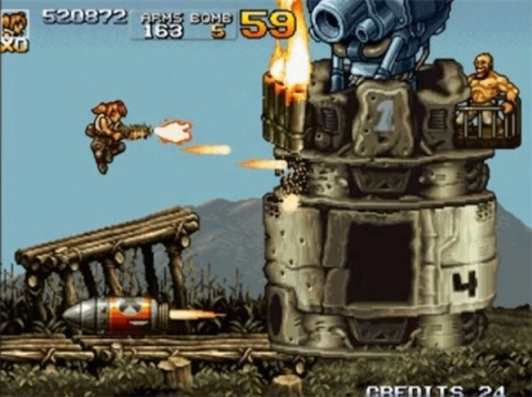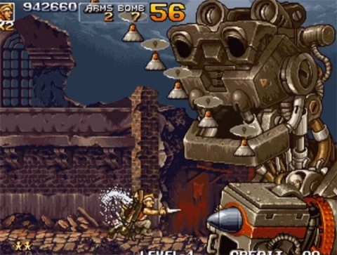 2、Elephant Slug:大象载具,装备火神炮,获得“电池”或“火辣椒”后可使用激光或火焰。
