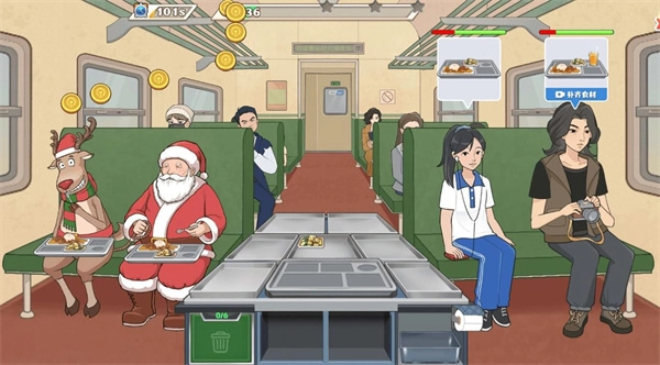 我超会做饭这款游戏的整体操作玩法和“飞机大厨”很相似,在这列充满怀旧感的绿皮火车上,玩家会遇到各种各样的客人。你要做的就是推着餐车,为乘客送上各式各样的美食。