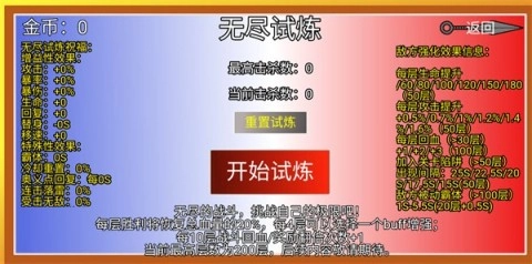1、进入游戏后,可直接在主界面选择无尽试炼开启挑战。