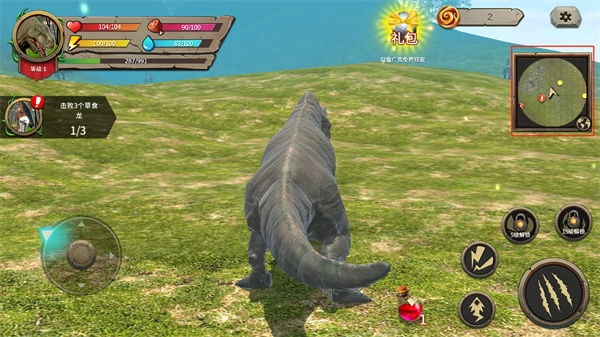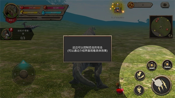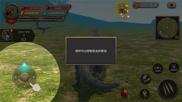 2、玩家可以通过左下角的摇杆来控制恐龙的移动;