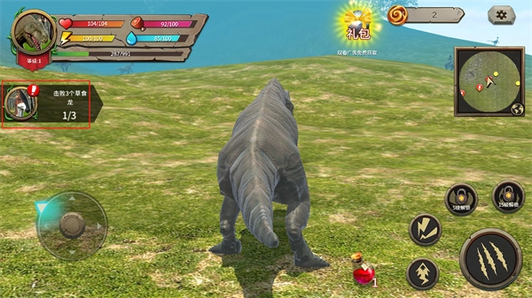 4、恐龙有生命、能量、饥渴和饥饿等属性,玩家可以通过捕食其他动物来升级,当血量为0时,恐龙将会死亡;