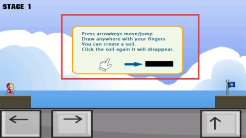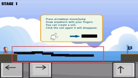 2.利用方向键来移动和跳跃,同时用手指画线来生成土壤,填补所有的缺口。