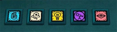 从左到右依次是工作、入梦、研究、探索、谈话。这五个卡槽是游戏进行的基础,玩家可以主动放入卡牌进行各类活动。