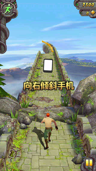 第二种:第二种方法并没有提到需不需加速道具,只是说在遇到悬崖时,玩家可以直接跳下去,但是在跳下去的同时手机要倾斜一下,这样也有几率可以触发这个Temple run Bug。