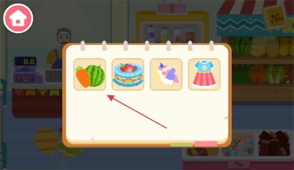 3、进入购物场景,选择【胡萝卜-西瓜】组合,完成商品选购任务,推进关卡。