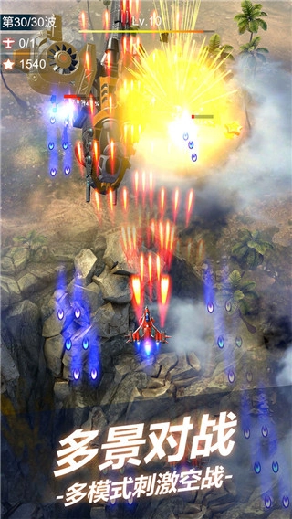 2、每一关都有熟悉的战斗快感,不断升级让你成为空中王牌;