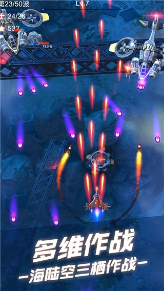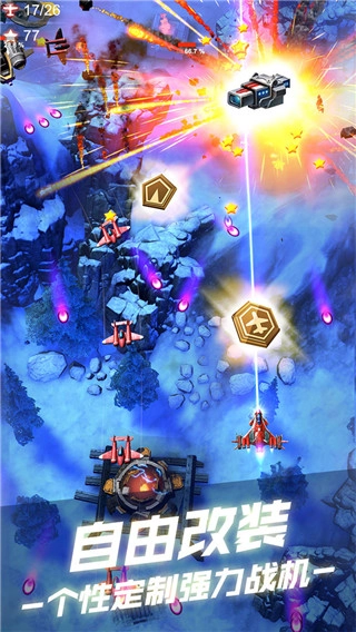 2、多种不同的攻击方式组合,可以自由修改战机,还有很多炫酷的技能等你释放,这款游戏具有很强的攻击感。