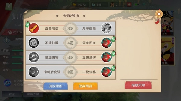 7、推荐天赋二:1222。第二套的思路则偏肉盾,核心技能则是大圣冲击。2-2、4-2天赋的分身回血,让孙悟空的持续作战能力增强,有了成为副坦的资本。一层、三层则让孙悟空主要依靠普攻和大圣冲击的真实伤害来打输出,越是后期,这种套路的孙悟空越可怕。