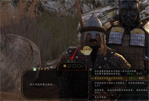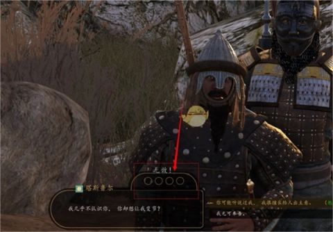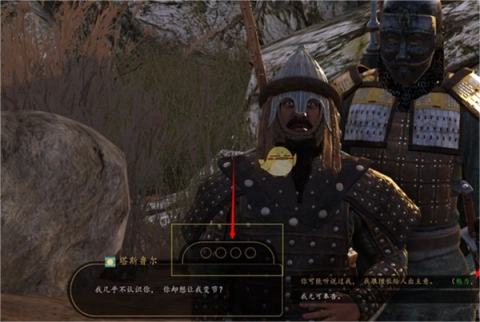 第二步:通过对话说服他,界面中红圈的四个圈代表说服进度。